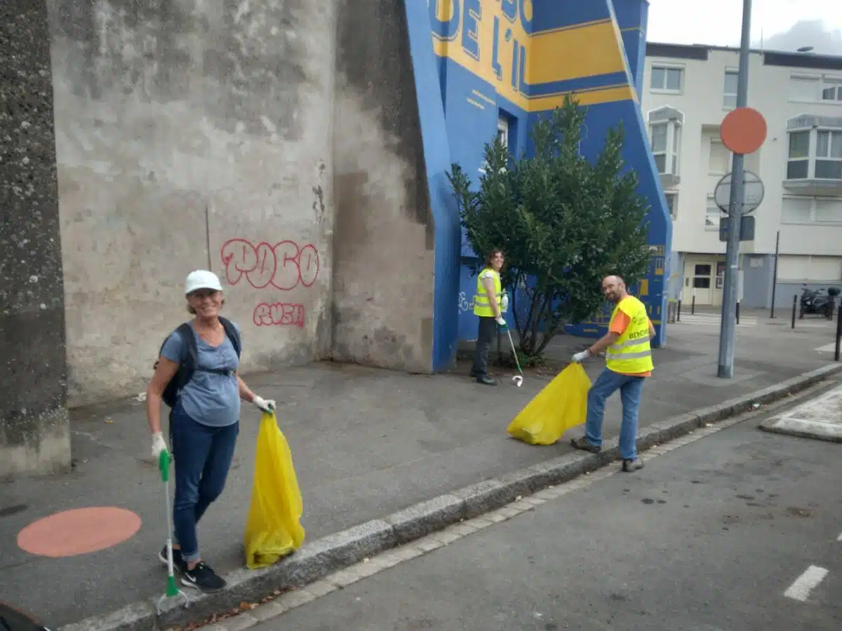 D’autres, comme Marie-Laure, sont venues en famille depuis l’extérieur de Nantes : « J’habite à La Montagne. Quand j’ai vu que Plastic Pickup organisait un ramassage dans le centre de Nantes, je n’ai pas hésité. Avec mes enfants, on fait ça régulièrement. Cette fois, on a trouvé un ordinateur portable et un appareil à raclette ! C’est incroyable ce qu’on peut retrouver abandonné dans la rue. »